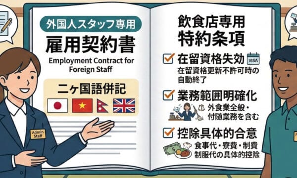 【テンプレ付】飲食店専用・外国人雇用契約書の書き方。トラブルを防ぐ特約条項